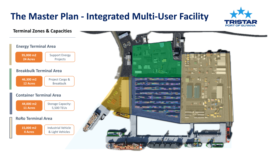 A phased development outlook intended to keep pace with vessel demand, energy activity, and multi-user logistics growth in Guyana.